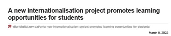 Diari digital URV: A new internationalisation project promotes learning opportunities for students. March 8, 2022